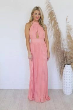 Budget π Pink Lily Sunny Gleam Orange Accordion Halter Maxi π Dress FINAL SALE β¨
