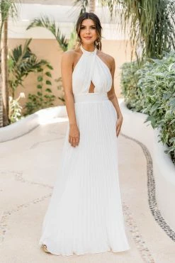 Cheap βοΈ Pink Lily Sunny Gleam White Accordion Halter Maxi π Dress FINAL SALE π₯°