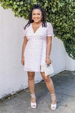 Outlet β€οΈ Pink Lily Roadside Market Ivory/Pink Floral Side Slit π Dress FINAL SALE π