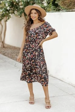 Hot Sale π Pink Lily On Repeat Floral One Shoulder Ruffle Maxi π Dress Black FINAL SALE π