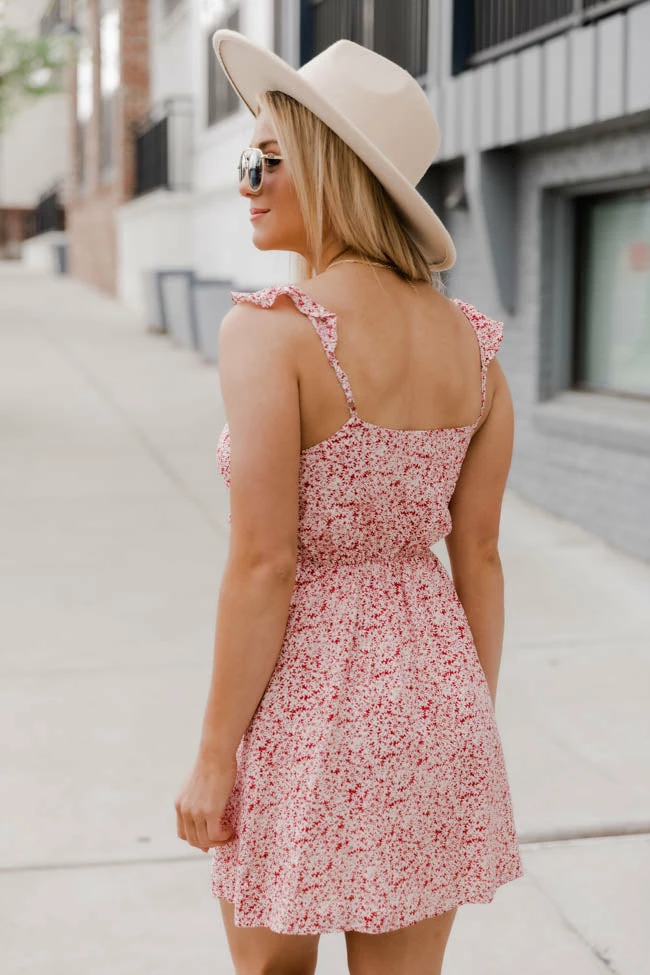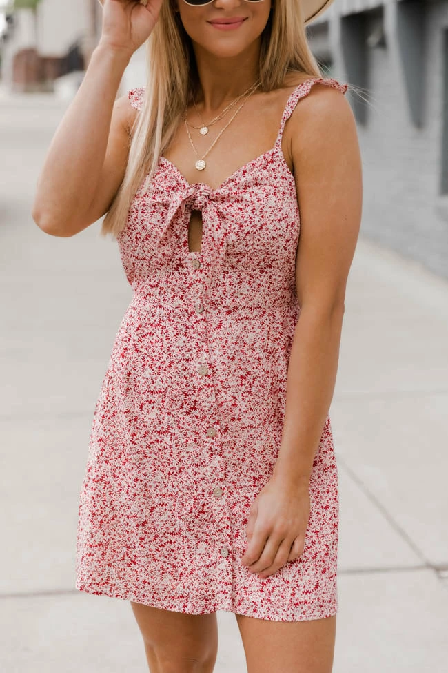 - Red floral dress