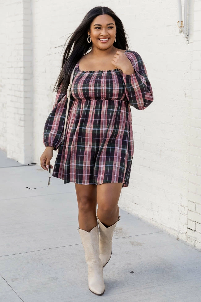 - Green plaid dress