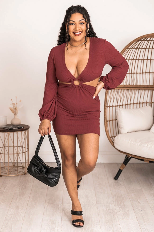 - Balloon sleeves with a cut out ring midsection and v-neckline