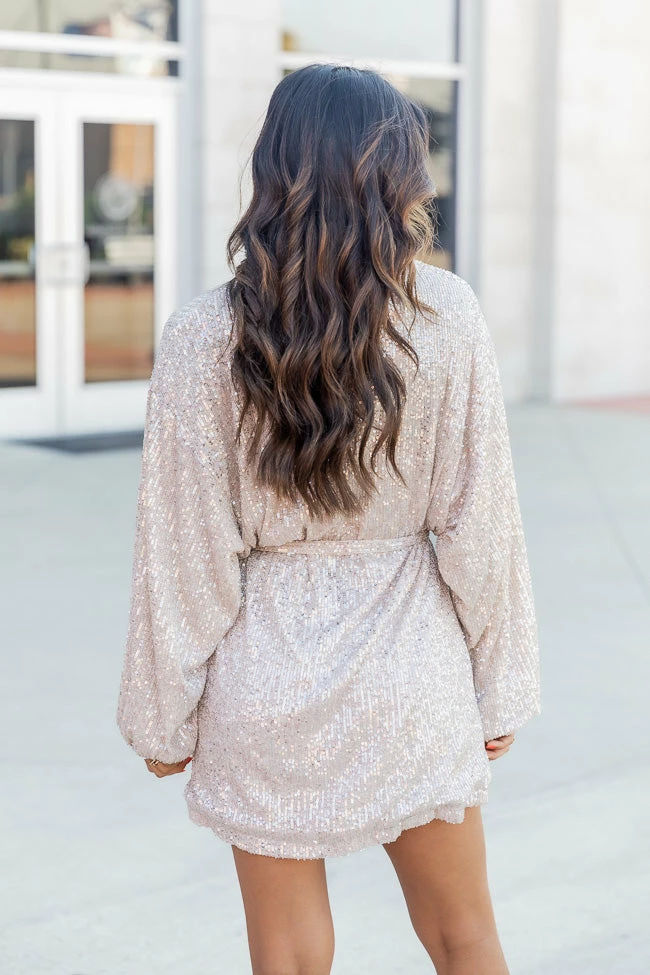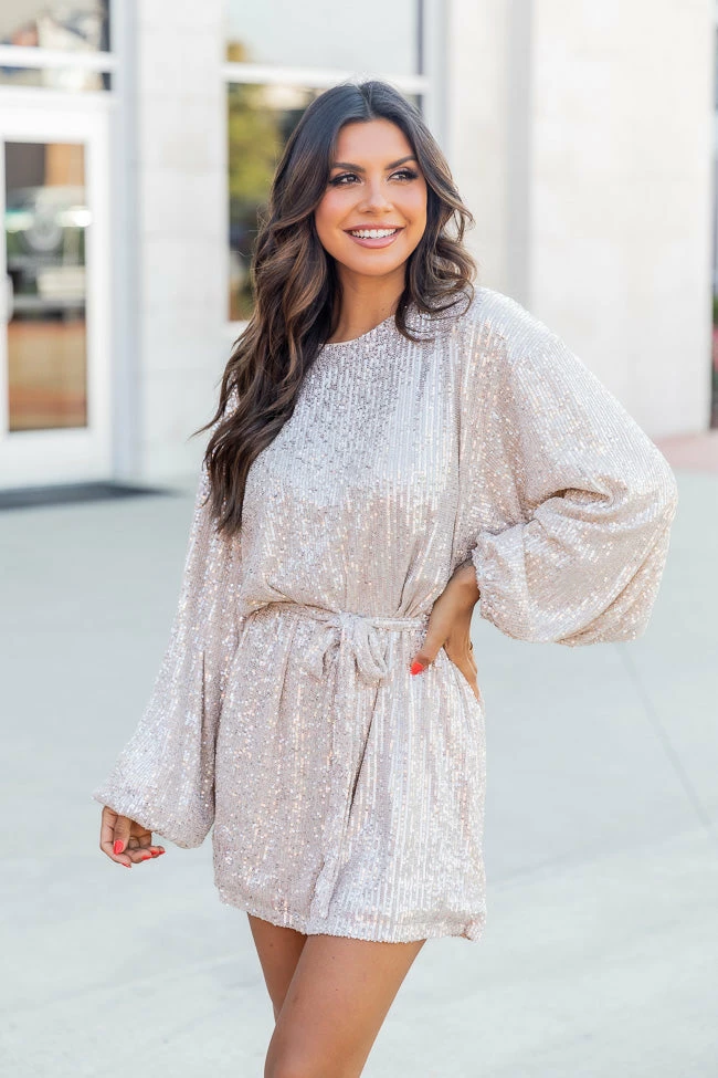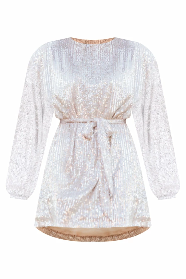 - Balloon sleeves with a mini length and self tying belt detailΒ