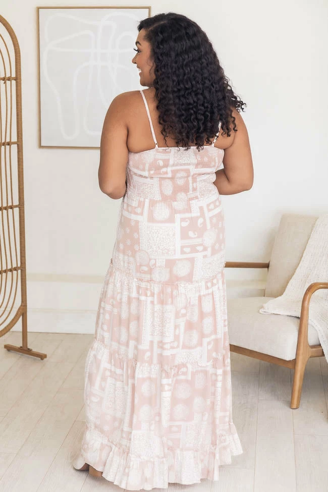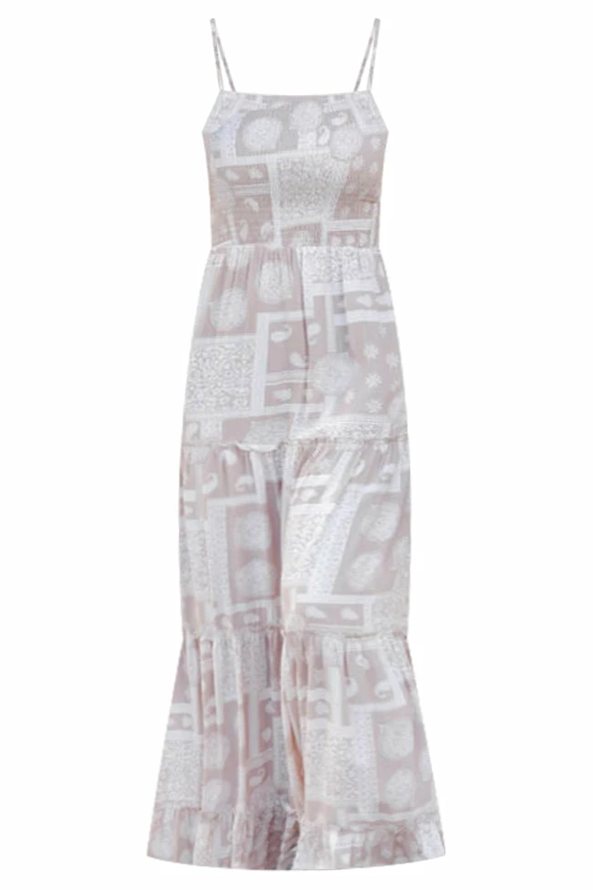 - Tank cut dress with side zipper side with adjustable straps, and ruffled hem