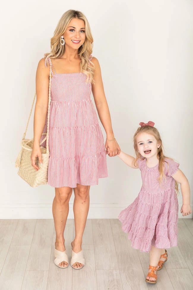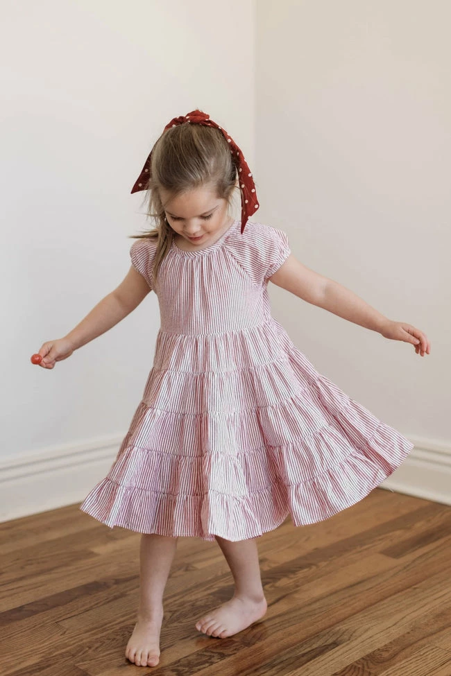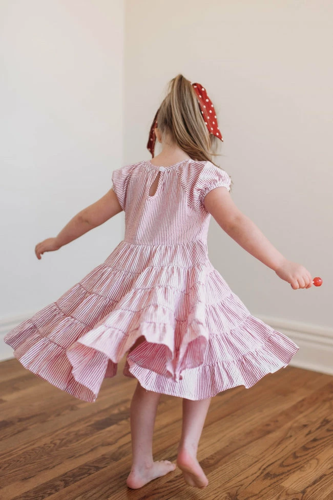 - Girls red stripe midi dress