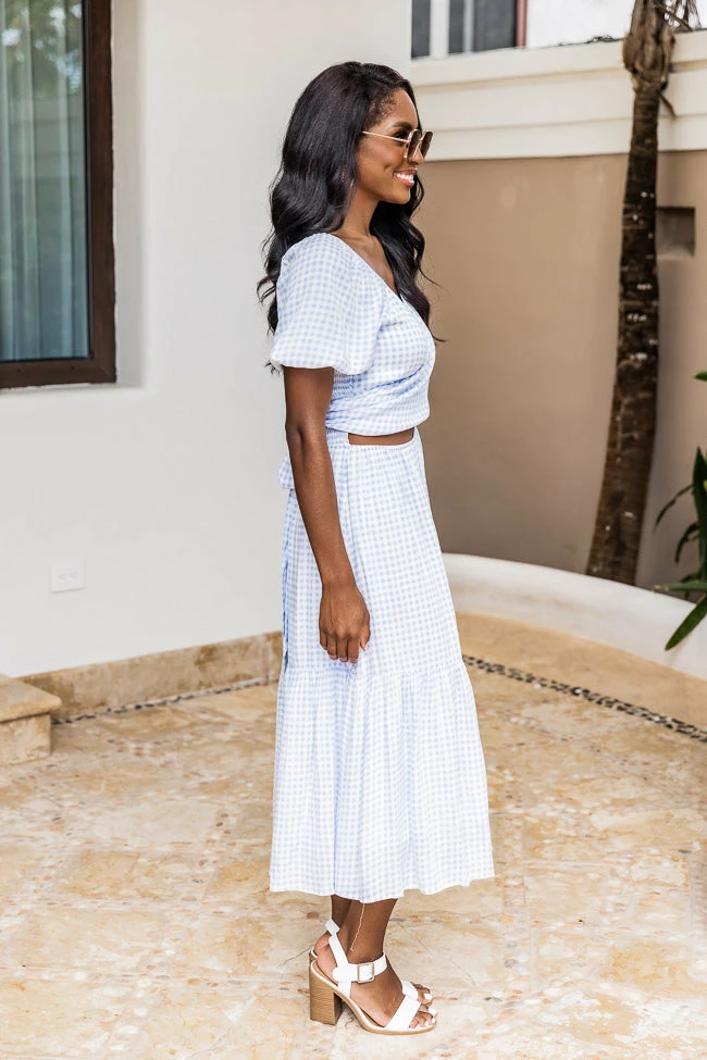 - Self tying wrap style with short sleeves and cutout mid sectionΒ