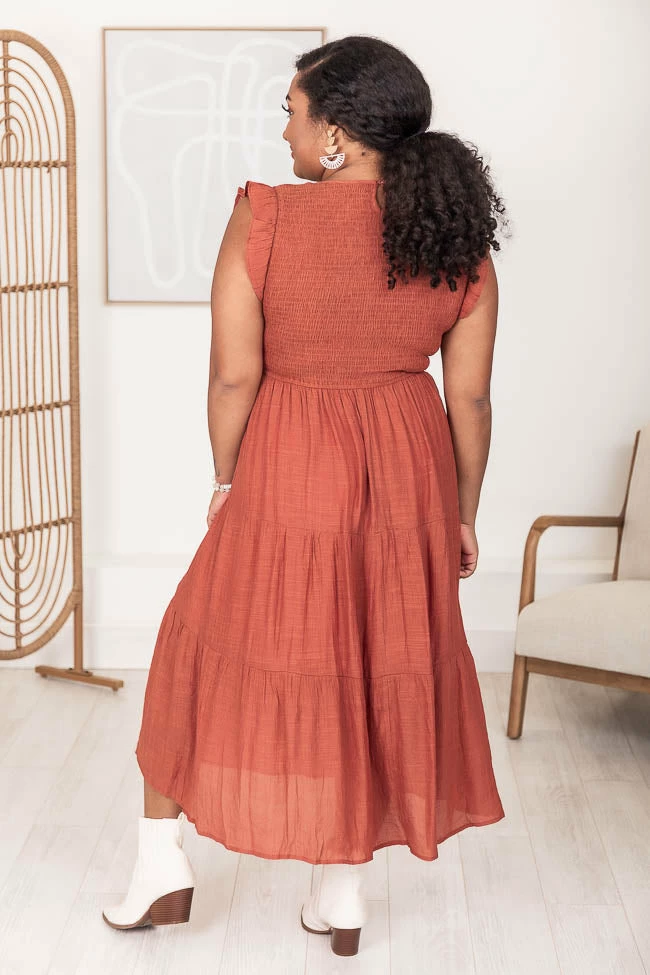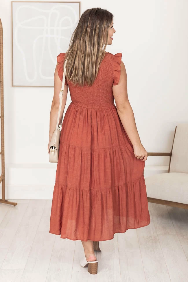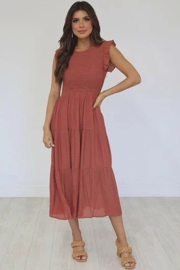 Budget 😍 Pink Lily Turn Of Events Ginger Tiered Midi πŸ‘— Dress 🎁