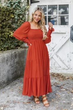Hot Sale β Pink Lily Momentary Phase Rust Smocked Bust Maxi π Dress FINAL SALE π
