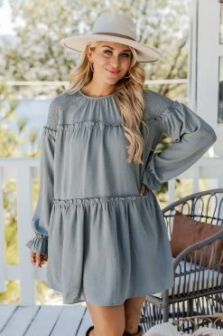 Wholesale β¨ Pink Lily I’ll Always Remember Steel Grey Smocked Shoulder Mini π Dress π
